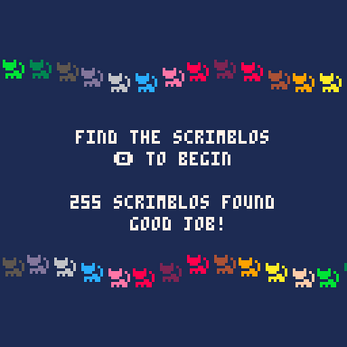 Explore a vast world, find many scrimblos, and have a great time! Props to those who reach 255 scrimblos.
